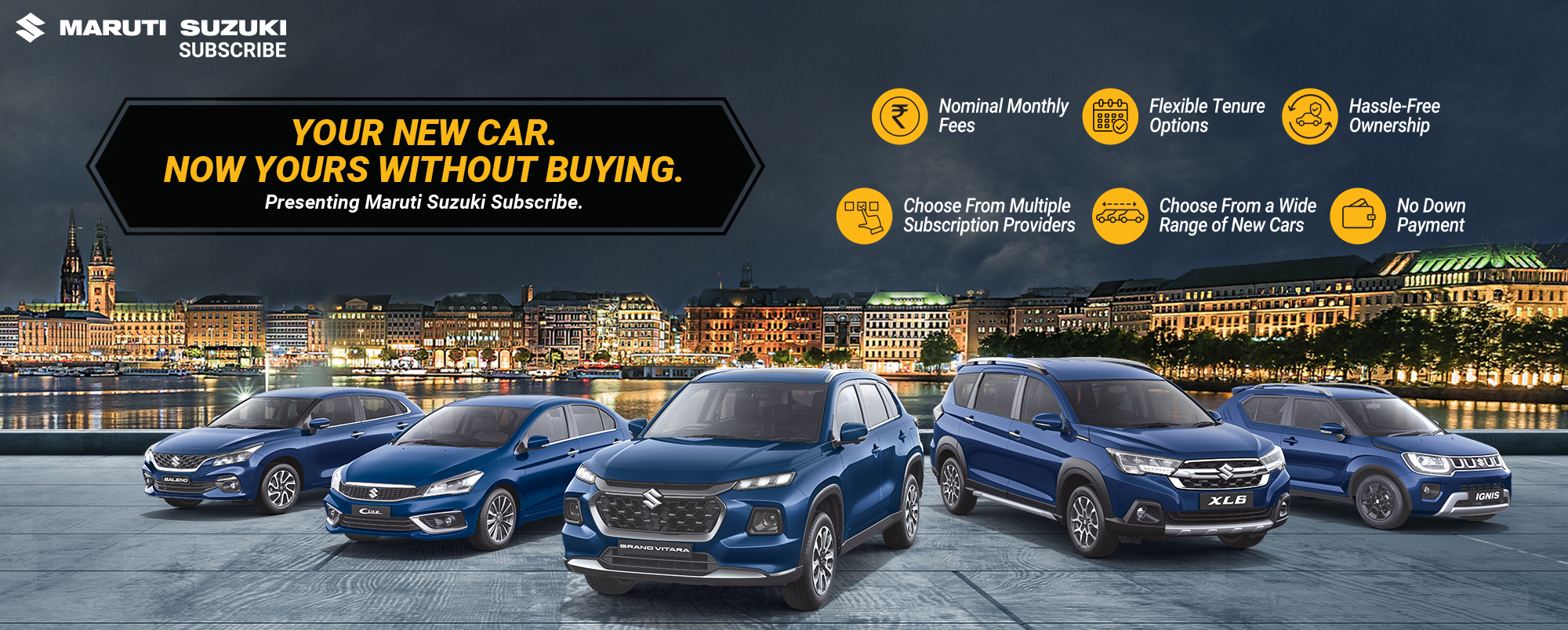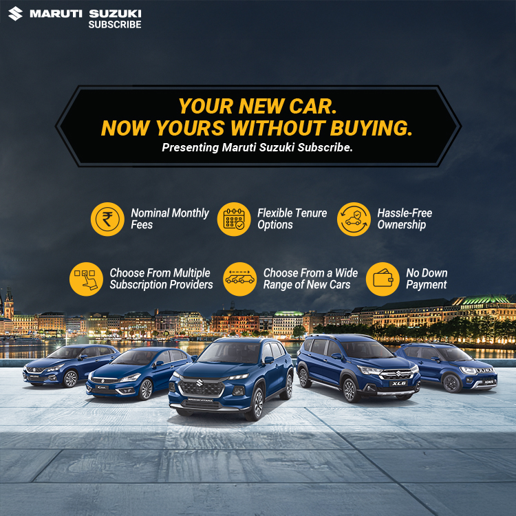 Maruti Suzuki Subscribe enables all customers to enjoy driving their preferred Maruti Suzuki cars without having to deal with all the financial responsibilities that come with owning a car. All you need to do is opt for a monthly subscription plan at a fixed monthly fee, which includes the routine maintenance and insurance costs, and choose a flexible tenure. At Bhatia and Company in, Jhalawar South, Jhalawar, all Hatchback, Sedan, SUV, the MUV models line-up includes Baleno, Invicto, EVitara, Jimny, Ciaz, Ignis, Fronx, Grand Vitara, XL6. Here, you will enjoy Maruti Suzuki Subscribe benefits such as: